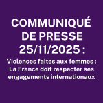 COMMUNIQUE DE PRESSE 21/11/2025 : Violences faites aux femmes : La France doit respecter ses engagements internationaux