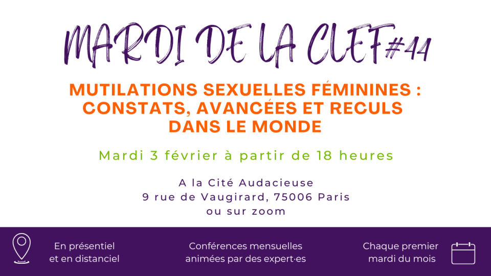 Replay Mardi de la CLEF #44 : Mutilations sexuelles féminines : constats, avancées et reculs dans le monde10 mars, 2026 Replay Mardi de la CLEF #45 : Les associations féministes au coeur des élections municipales La CLEF Articles en lien10 mars, 2026Replay Mardi de la CLEF #44 : Mutilations sexuelles féminines : constats, avancées et reculs dans le mondeLire la suite10 mars, 2026Replay Mardi de la CLEF #43 : (S’)informer quand on est féministeLire la suite10 octobre, 2025Replay Mardi de la CLEF #42 : Corps des femmes, champ de bataille. Génocide de l’État israélien en Palestine et violences spécifiques en Israël et Palestine.Lire la suite